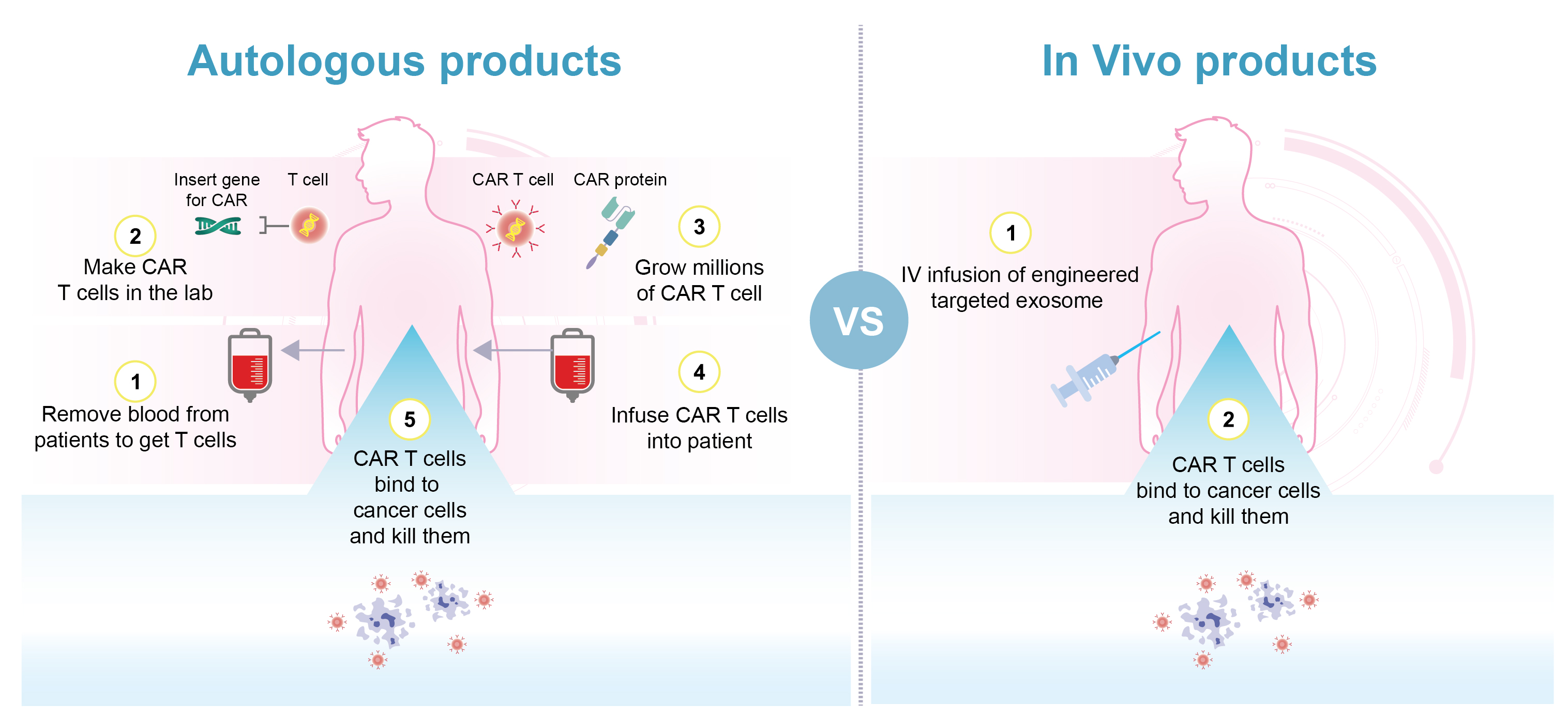 ◎特色:長聖EXO001(In Vivo CAR-T)是由基因工程HEK 293T穩定細胞產生的 CD3e Nb-EVs 產品,Nb-CAR.BiTE轉基因可以用來治療 HLA-G 及/或 PD-L1 雙靶點的實體腫瘤,不但有效對抗體內各種實體腫瘤,且與現有微脂體藥物傳輸系統及病毒載體的 CAR-T 平台相比,EXO001的免疫原性較低,安全性更高。