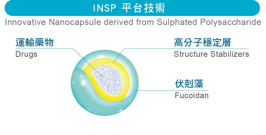 INSP 為一種創新奈米膠囊技術,打造具標靶性、高穩定性、高效率、安全性地遞送多種藥物,目前INSP003為包覆紫杉醇的次世代精準標靶化療藥物 ,進一步優化療效與安全性。